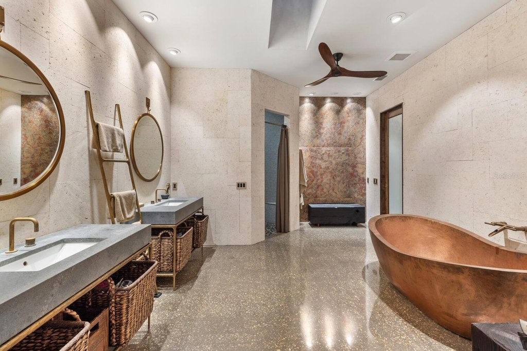 Nestled in the prestigious gated enclave of The Oaks Bayside in Sarasota, this Sedona-inspired retreat was recently updated from wall to wall creating a like brand new home. The estate seamlessly blends modern luxury, comfort, and serenity. With almost 4,000 SQF and boasting 4 generously sized bedrooms and 3 1/2 baths, this residence has been thoughtfully renovated with the finest finishes, including newer impact windows, retractable window walls, a sleek tile roof, custom concrete flooring, and exquisite baths and fixtures to go along with the state-of-the-art kitchen, equipped with top-tier Wolf and Sub-Zero appliances. Soaring vaulted ceilings create an expansive, airy ambiance, while large windows frame stunning lake views, offering the perfect backdrop for the sparkling pool and expansive spa, complete with tranquil water features. With disappearing sliders throughout, the home can let the air and light flow easily from outside to in. Enjoy breathtaking sunsets from your private oasis or stroll a kayak or paddleboard to the nearby boat launch for effortless access to Sarasota Bay and the Gulf, thanks to the newly reopened Midnight Pass. Situated on a secluded .40-acre lot, this property offers a serene retreat, featuring a Zen garden surrounded by lush landscaping. Residents of The Oaks enjoy world-class amenities, including championship golf, fine dining, tennis, fitness, and swimming. At 49 Osprey Point Drive, every detail has been meticulously crafted for those who seek refined living and unparalleled elegance.